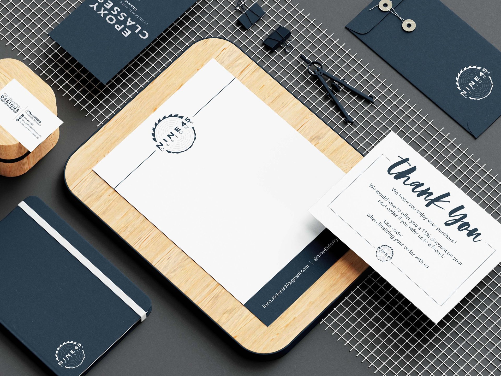 Nine45 Designs was a large-scale, end-to-end branding project developed to support a creative epoxy brand with a strong focus on craftsmanship, quality, and visual storytelling. As the founder and creative lead, I built the brand from the ground up — shaping every visual touchpoint from identity to execution.