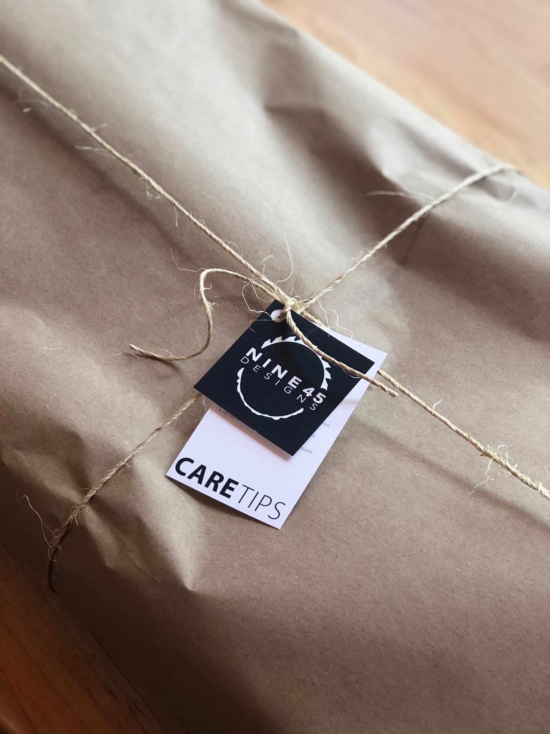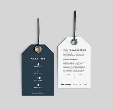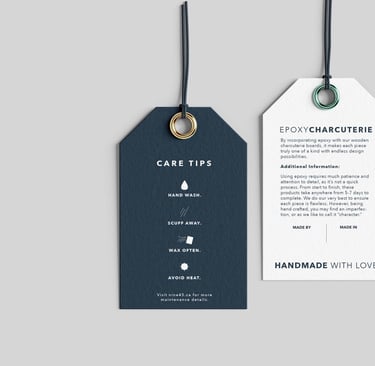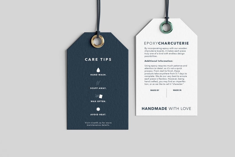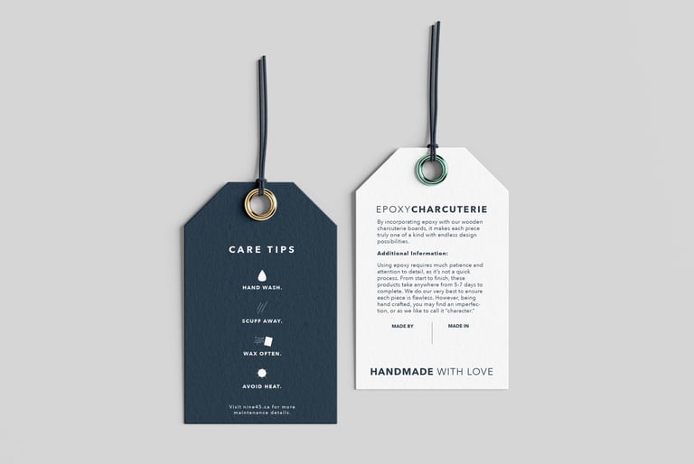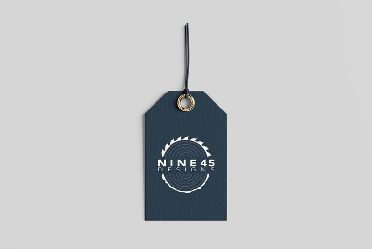 Custom hang tags designed for Nine45 Designs to complement the product packaging, providing essential information while reinforcing the brand’s handcrafted, quality-driven identity.