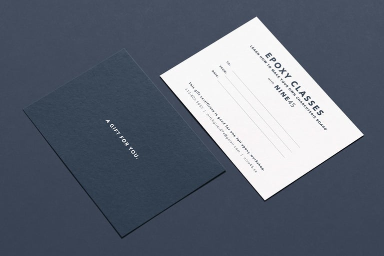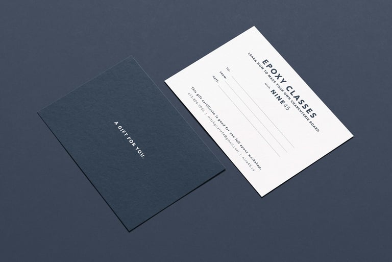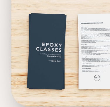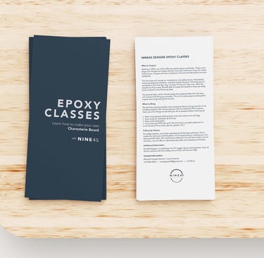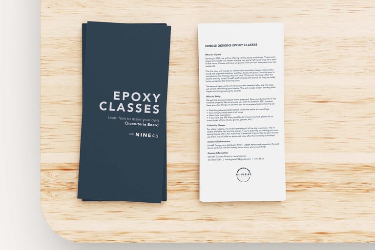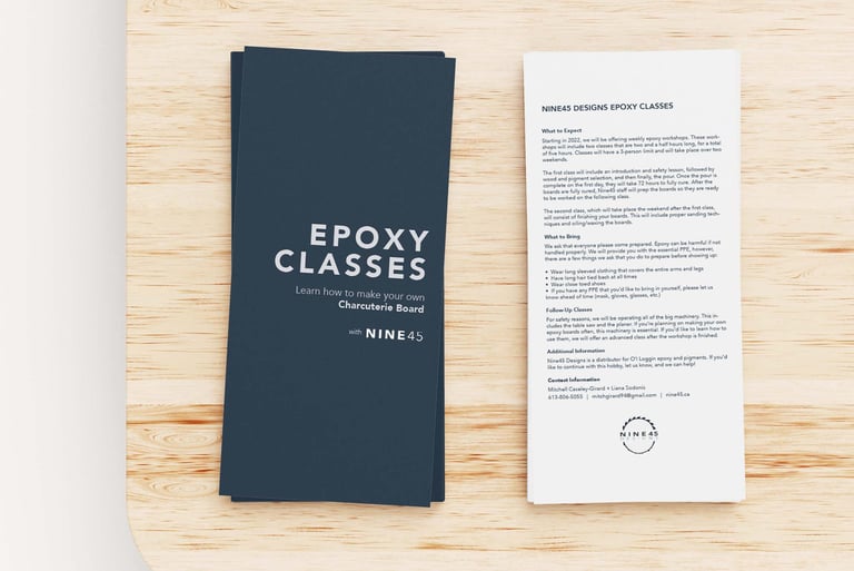 A multi-channel marketing campaign designed for Nine45 Designs’ epoxy classes, featuring social media ads and coordinating postcard mailers and brochures to promote enrolment and awareness.