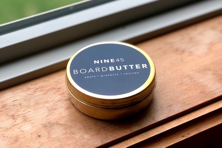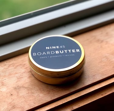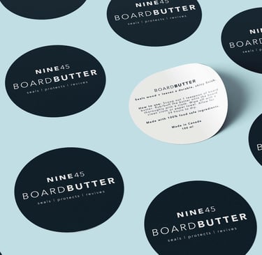 Board butter packaging designed to feel as intentional as the product itself — a clean, cohesive label that aligns with the Nine45 Designs handcrafted brand.