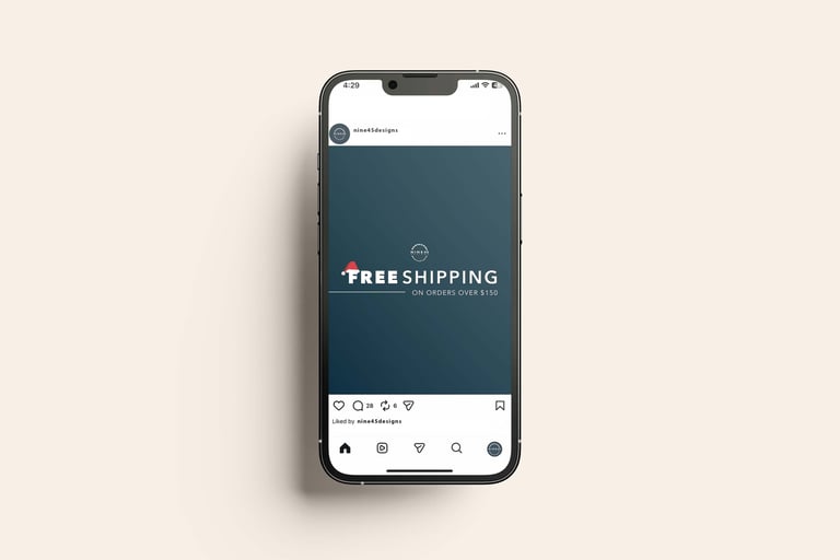 A holiday promotion campaign created for Nine45 Designs, featuring custom social media ads designed to support seasonal messaging and boost brand visibility.